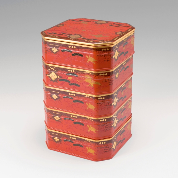 Red-lacquered Three-tiered Box